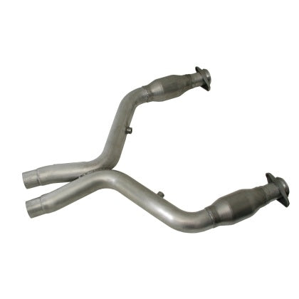 BBK Performance short mid X pipes with catalytic converters are specifically designed to be used with BBK full Length exhaust headers to complete the exhaust installation to your cars cat back exhaust system. This BBK mid pipe is designed and built with 3.00 in. CNC mandrel bent tubing for maximum exhaust flow and high flow catalytic converters. All BBK mid pipes feature ball and socket style connectors for simple installation and adjustment for good ground clearance. The BBK merged X center section crossover is designed to maximize the exhaust flow potential of your Mustangs high performance engine to get the maximum horsepower and torque available to the ground. Every BBK mid X pipe offers performance, quality and value that guarantees years of top performance for your Mustang.For Use With BBK Long Tubes 1633/0 1856/0 on 11-14 5.0 Applications